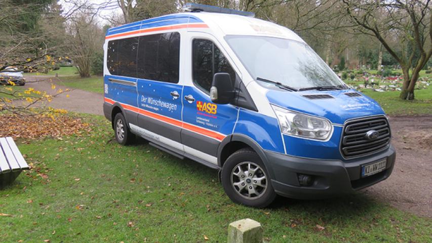 Der schwerkranke 69-Jährige und sein Neffe wurden von unseren beiden Wunscherfüllern Jonas Priedemann und Hans-Rudolf Lefs zum Kieler Parkfriedhof Eichhof gebracht. Vor Ort zwar nur ein kurzer Weg, aber ohne Unterstützung leider nicht zu bewältigen.